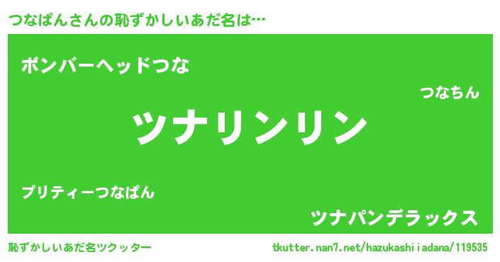 | ポケモン風あだ名 | 『ヒツナパン』『ツナゴンZ』 |