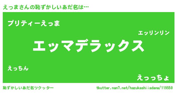 | 女子向けラノベタイトル風あだ名 | 『えっまの玉の輿計画!』 |