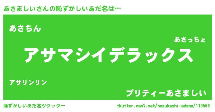 | 意味不明あだ名 | 『自称あさましい』『永久保存あさましい』 |