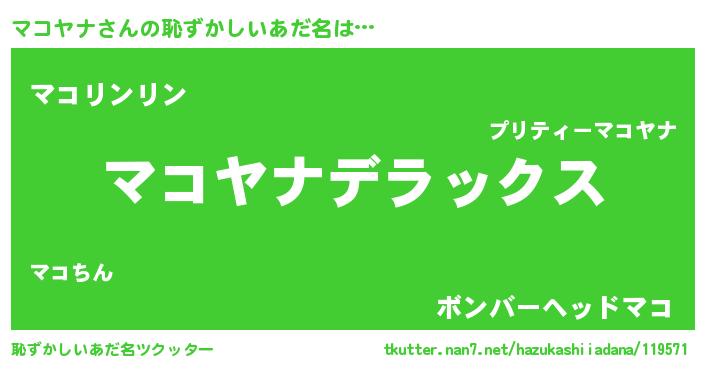 | ヒーロー風カッコイイあだ名 | 『仮面マコダー』『ウルトラ戦士マコヤナ』 |