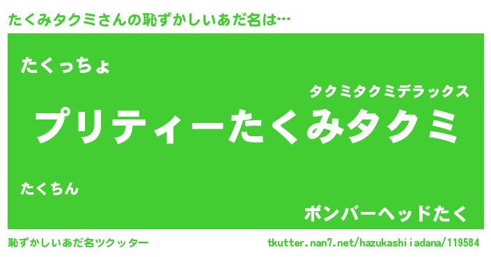 | ヘコむあだ名 | 『たくもー』『酢こんぶ』『たくを』 |