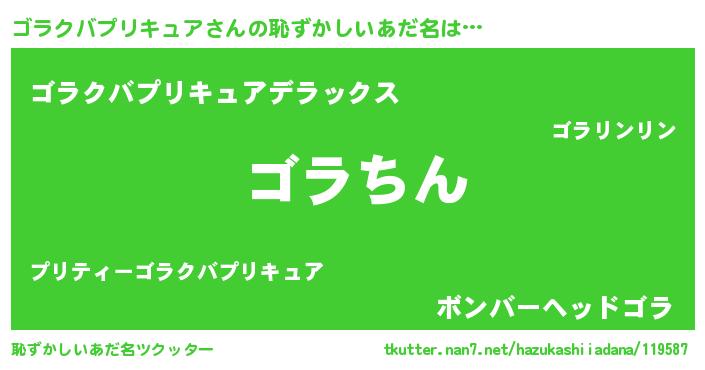 | 意味不明あだ名 | 『永久保存ゴラクバプリキュア』 |