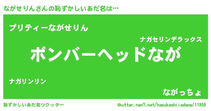 | 男性向けラノベタイトル風あだ名 | 『おまえをオタクにしてやるから、俺をながせりんにしてくれ! 』 |