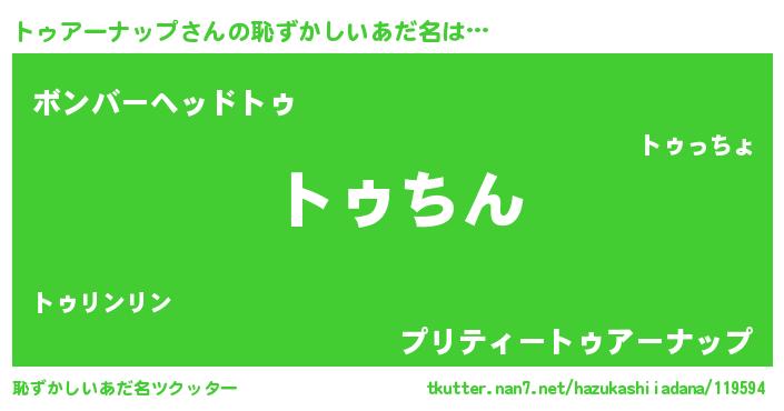| 意味不明あだ名 | 『永久保存トゥアーナップ』 |