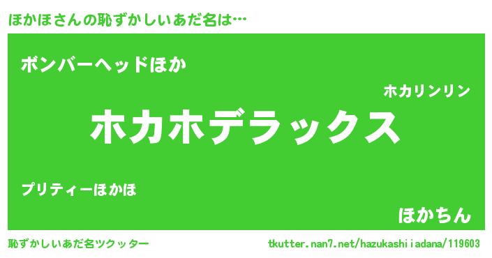 | ヒーロー風カッコイイあだ名 | 『最強戦士ホカホ』『慈愛の使者ほかほ』 |