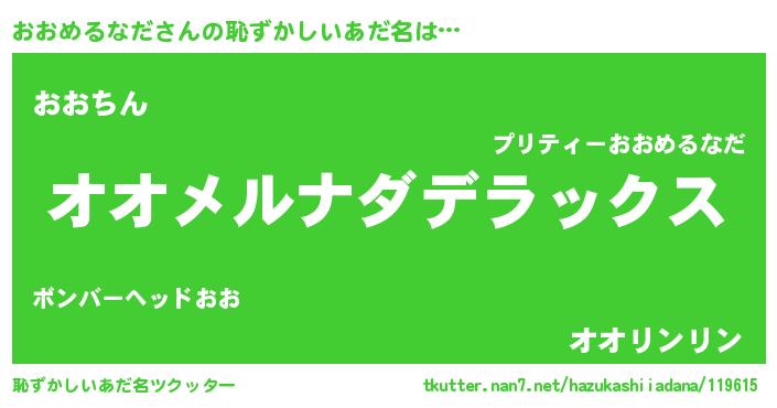| 意味不明あだ名 | 『住所不定無職おおめるなだ(2歳)』 |