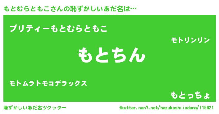 | ヘコむあだ名 | 『もとむらともこ(小並感)』『もともー』 |