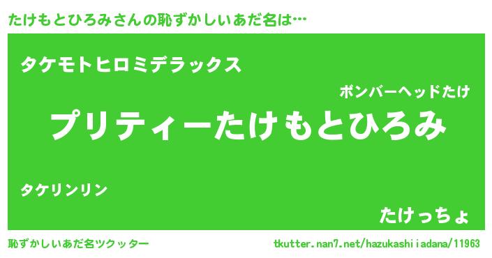 | ヒーロー風カッコイイあだ名 | 『スーパータケモトヒロミ』 |