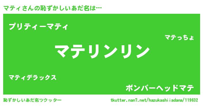 | 男性向けラノベタイトル風あだ名 | 『緋弾のマティ』 |