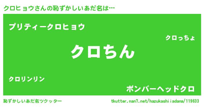 | ヘコむあだ名 | 『クロヒョウ(遠い目)』『クロにゅー』 |