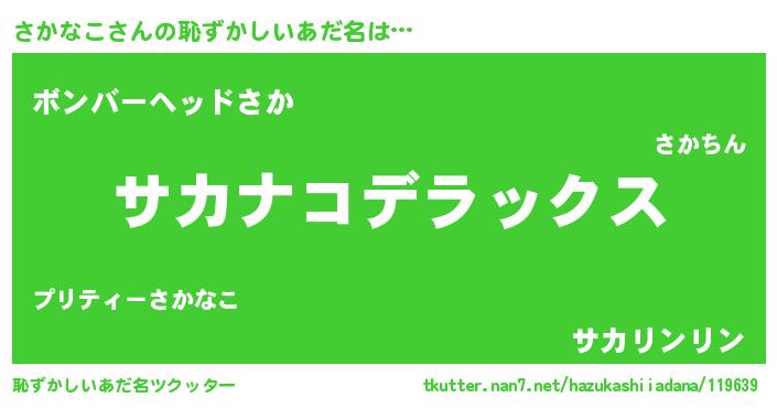 | 意味不明あだ名 | 『自称さかなこ』『永久保存さかなこ』 |