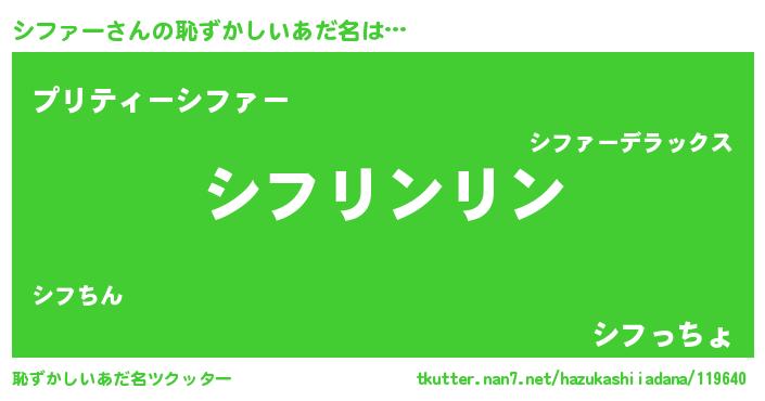 | 男性向けラノベタイトル風あだ名 | 『ダンジョンにシファーを求めるのは間違っているだろうか』 |