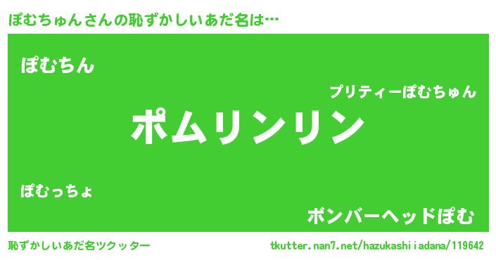 | 男性向けラノベタイトル風あだ名 | 『ぽむちゅんの嫁は女の子じゃないと思った?』 |