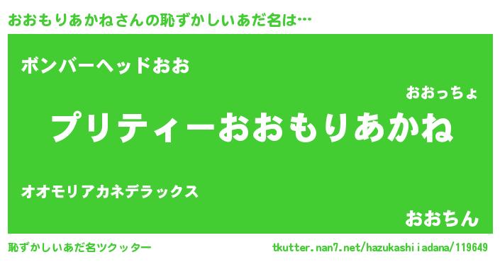 | ヘコむあだ名 | 『おおにー』『おおもりあかね(小並感)』 |