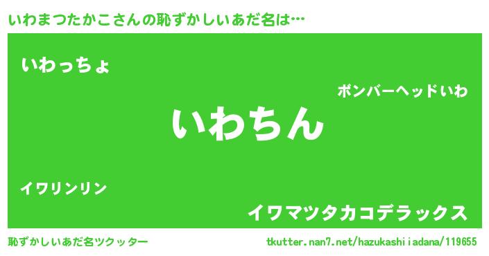| ヒーロー風カッコイイあだ名 | 『ネオイワマツタカコ』『黄金騎士イワ』 |