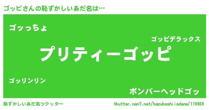 | 男性向けラノベタイトル風あだ名 | 『魔弾の王とゴッピ』『ゴッピの憂鬱』 |