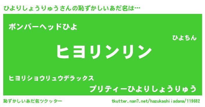 | ポケモン風あだ名 | 『ヒーヨイ』『ヒヒヨリショウリュウ』 |