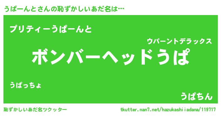 | ヘコむあだ名 | 『うぱにー』『うぱーんと(爆)』 |