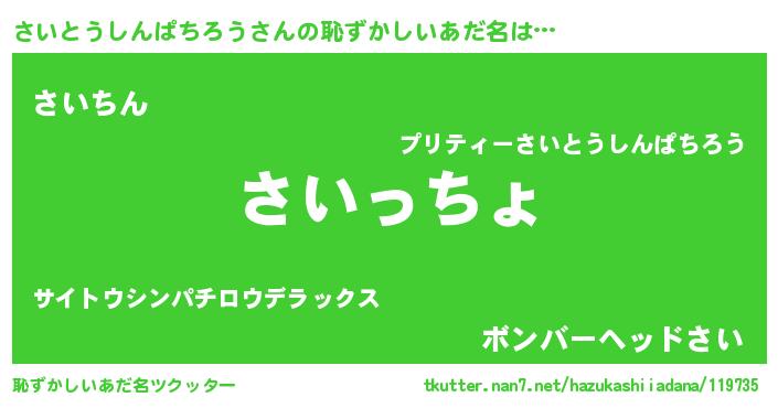 | 意味不明あだ名 | 『さいとうしんぱちろうフォーエバー』 |