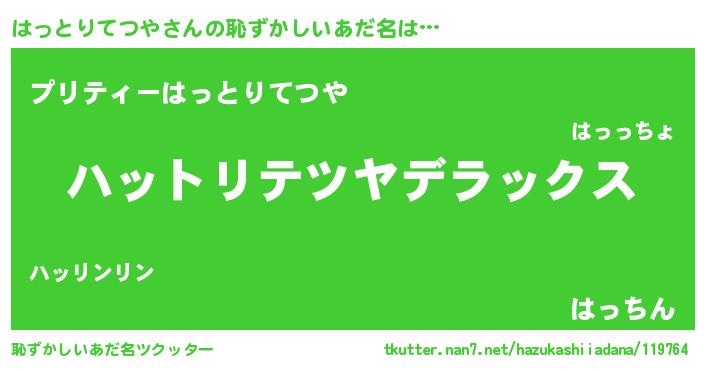 | 意味不明あだ名 | 『自称はっとりてつや』 |