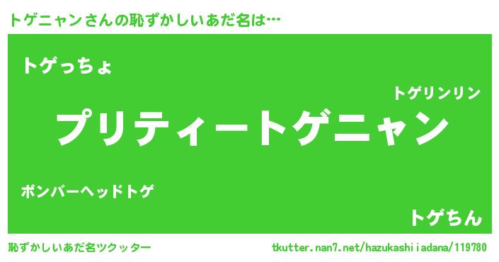 | ヒーロー風カッコイイあだ名 | 『スーパートゲニャン』『ネオトゲニャン』 |