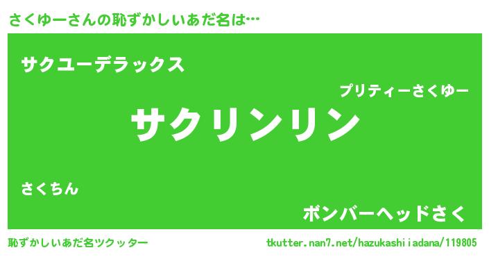 | ヒーロー風カッコイイあだ名 | 『暗黒騎士サク』『最強戦士サクユー』 |