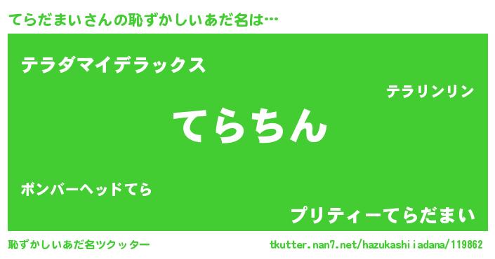 | 意味不明あだ名 | 『永久保存てらだまい』『自称てらだまい』 |