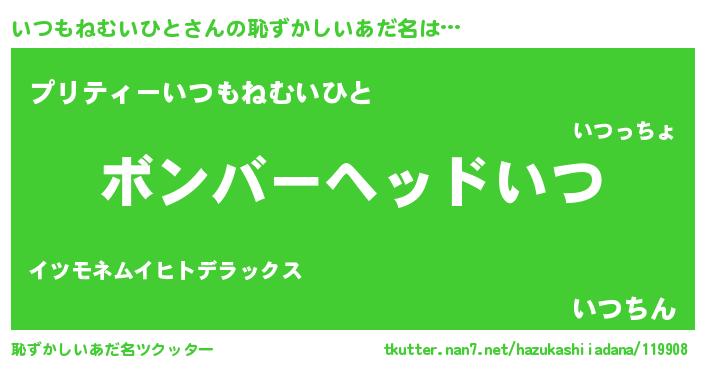 | 男性向けラノベタイトル風あだ名 | 『おまえをオタクにしてやるから、俺をいつもねむいひとにしてくれ! 』 |