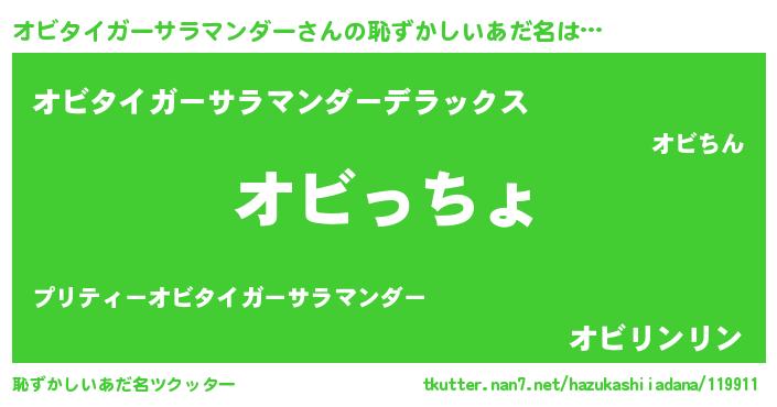 | 意味不明あだ名 | 『住所不定無職オビタイガーサラマンダー(84歳)』 |