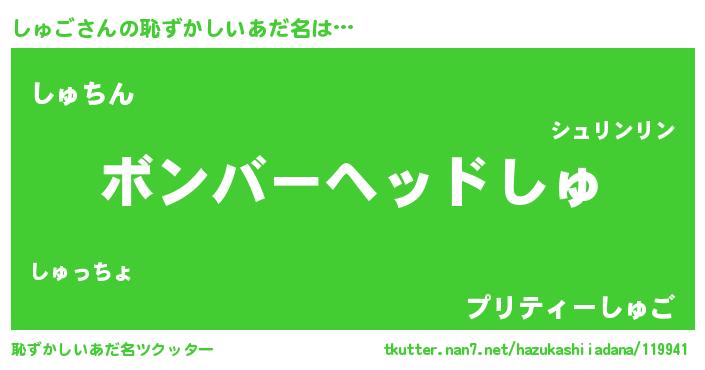 | ヘコむあだ名 | 『しゅご(苦笑)』『しゅもー』 |