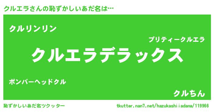 | ヒーロー風カッコイイあだ名 | 『究極戦士クルエラ』『魔戒騎士クル』 |