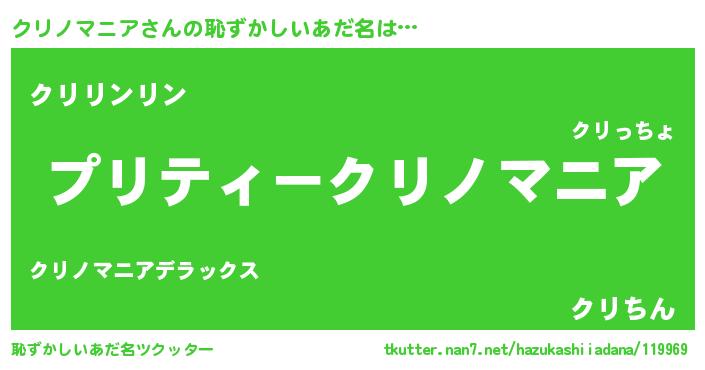 | 男性向けラノベタイトル風あだ名 | 『クリノマニアアートオンライン』 |