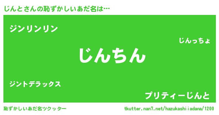 | 意味不明あだ名 | 『しいたけ科じんと属』『永久保存じんと』 |