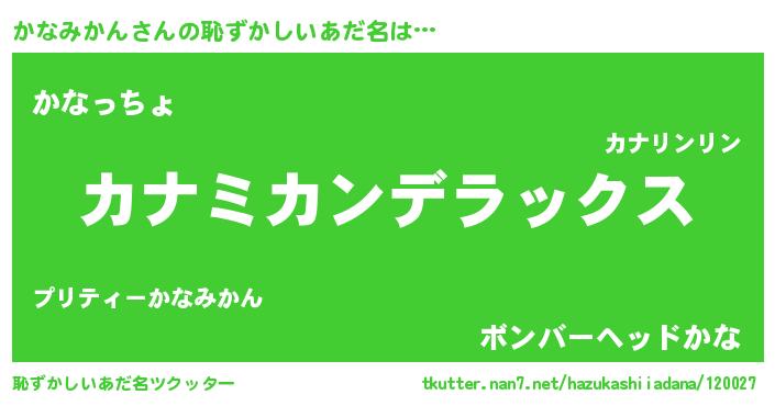 | 伝説のあだ名 | 『秘められし陰陽師かなみかん』 |