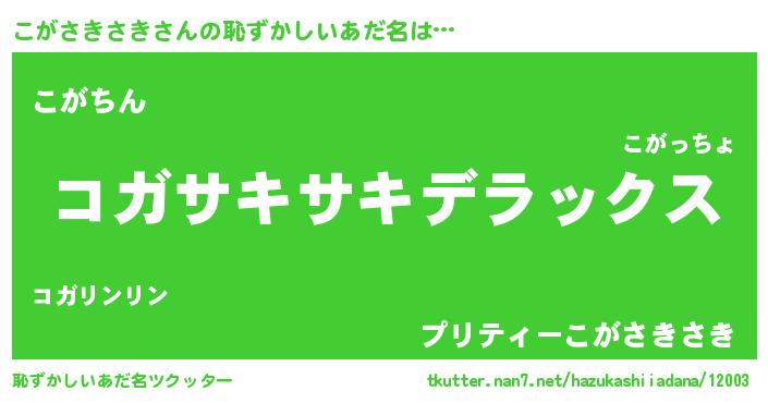 | 意味不明あだ名 | 『自称こがさきさき』 |