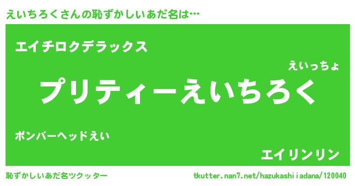 | ヘコむあだ名 | 『えいにー』『えいを』『牛乳』 |
