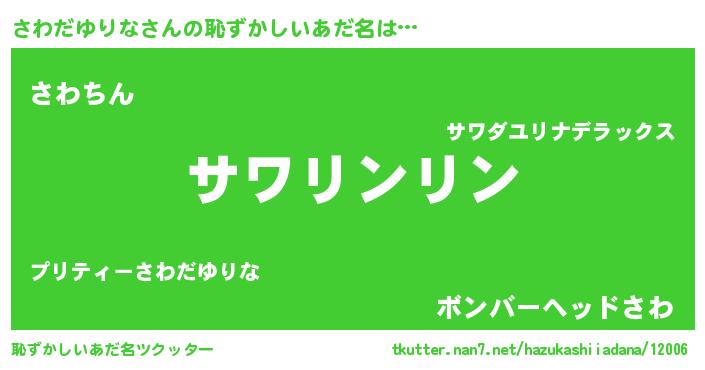 | 意味不明あだ名 | 『とにかく怪しいさわだゆりな』 |