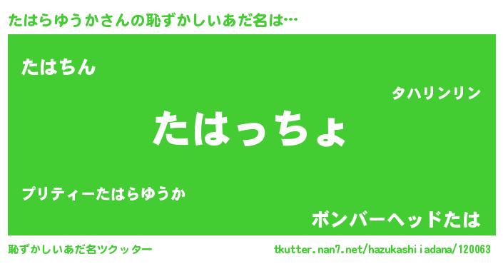 | 意味不明あだ名 | 『たはらゆうかフォーエバー』 |