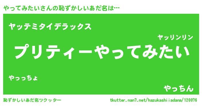 | ヒーロー風カッコイイあだ名 | 『仮面ヤッダー』『スーパーヤッテミタイ』 |