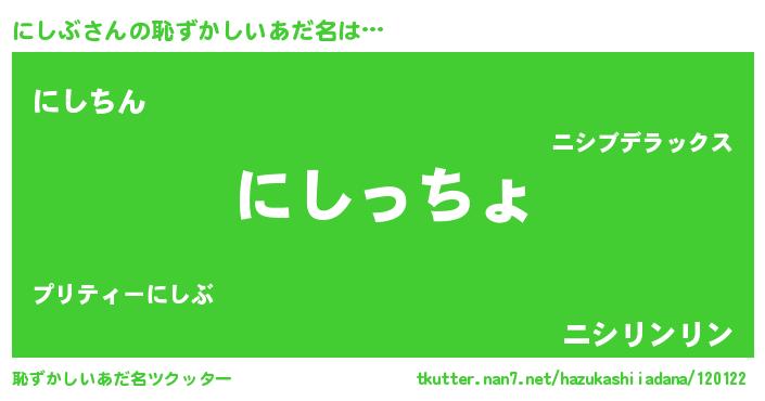 | 意味不明あだ名 | 『にしぶフォーエバー』『永久保存にしぶ』 |