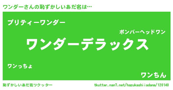 | 女子向けラノベタイトル風あだ名 | 『ワンダーなんてお断りですっ。』 |