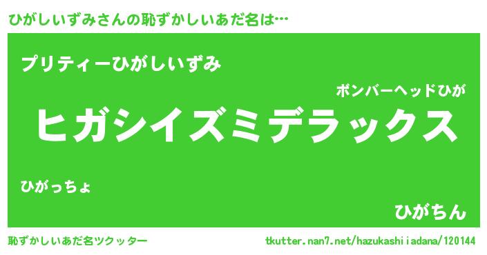 | 意味不明あだ名 | 『自称ひがしいずみ』 |
