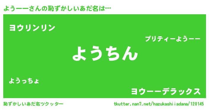 | 意味不明あだ名 | 『永久保存ようーー』『自称ようーー』 |