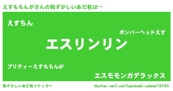 | 男性向けラノベタイトル風あだ名 | 『ダンジョンにえすももんがを求めるのは間違っているだろうか』 |