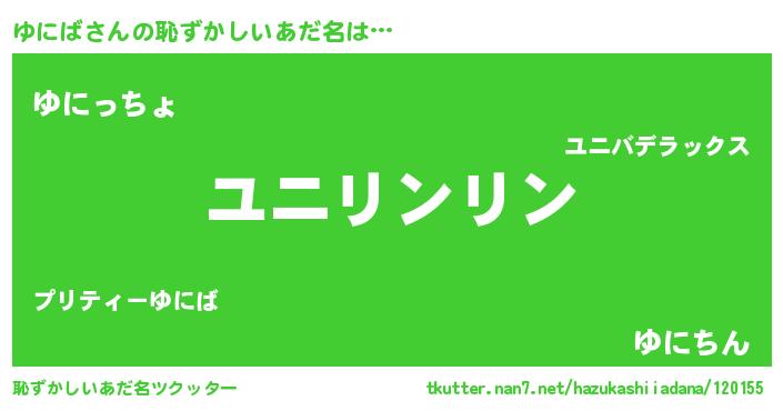 | 意味不明あだ名 | 『もやし科ゆにば属』『永久保存ゆにば』 |