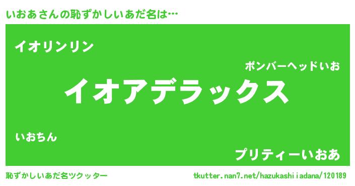| 肩書あだ名 | 『いおあ閣下』『いおあ団長』 |