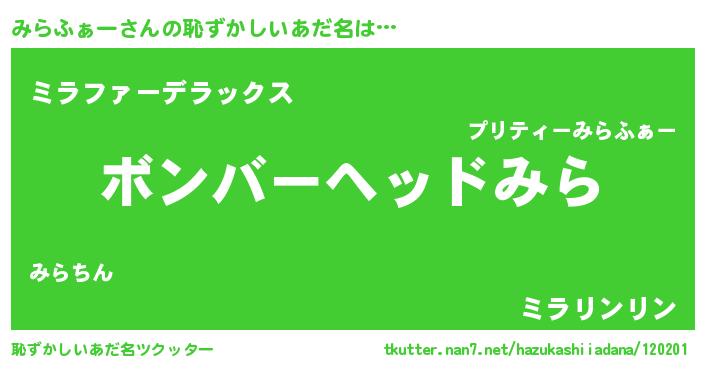 | ヘコむあだ名 | 『みらっぺ』『みらふぇ~』 |
