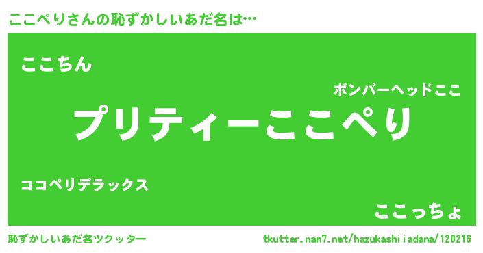 | 意味不明あだ名 | 『住所不定無職ここぺり(12歳)』 |