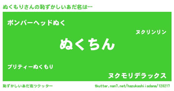 | ヘコむあだ名 | 『ぬくもり(苦笑)』『ぬく太郎』 |