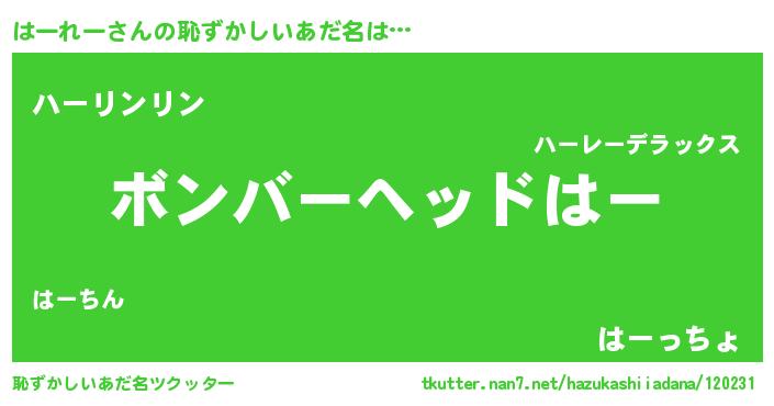 | 男性向けラノベタイトル風あだ名 | 『ハーレースレイヤー』 |